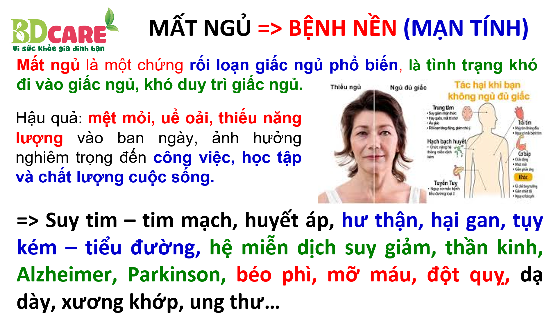 VÀ MẤT NGỦ THÌ GÂY RA HÀNG LOẠT CÁC BỆNH NỀN - BỆNH MÃN TÍNH KHÔNG LÂY